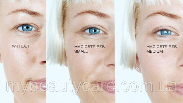 MAGICSTRIPES підходить як жінкам, так і чоловікам незалежно від віку. Особливо ефективні смужки MAGICSTRIPES для корекції "нависающего" століття, при симптомах втоми, недосипання, для усунення слідів набряклості і візуального збільшення невеликих очей.